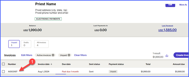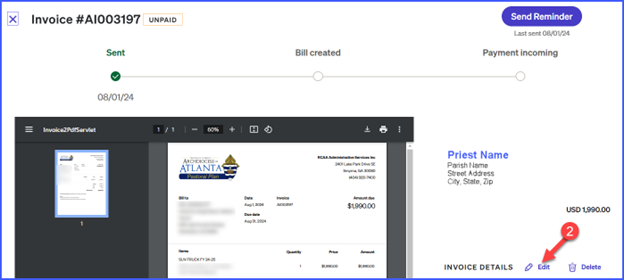 Invoices for priest auto insurance premiums are billed annually to the priest and should be paid by the priest. They should not be paid by the parish. Invoices with a due date of August 14, 2025, were generated by the Chancery through BILL.com and sent to each priest’s archatl.com email address on file in July. The email from BILL.com contains a link to make the auto insurance payment. After clicking the link, you will be prompted to log in to your Bill account. Invoices should be paid in full upon receipt. However, you can make partial payments in BILL if you wish.