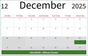- The Chancery closes from December 19 (at 2 p.m.) through Friday, January 2, for the holidays.